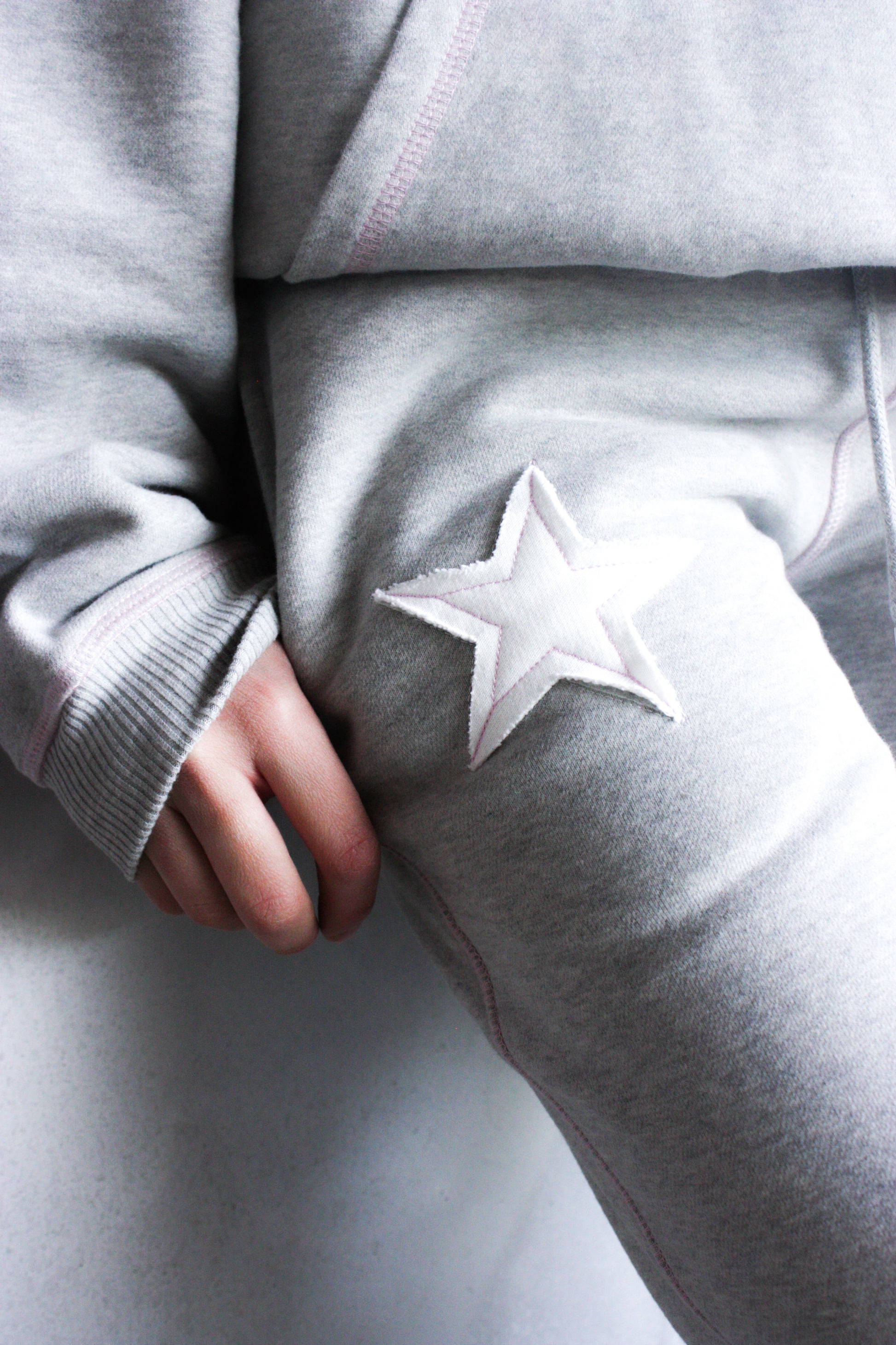 Passend zum Hoodie: weiche Jogger aus 100 % Baumwolle mit kräftigem Pink-Print und weißem Stern. Peach-Effekt-Stoff, ideal für Streetwear-Statements und Alltag.